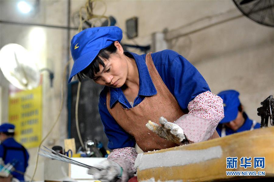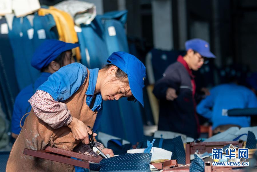 梁桂枝在車間勞作(2019年12月10日攝)。新華社發(fā)(孫赟飛攝)
