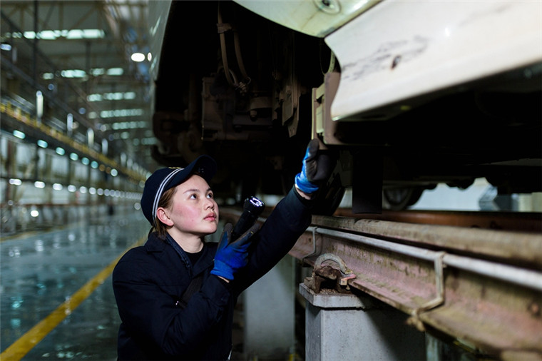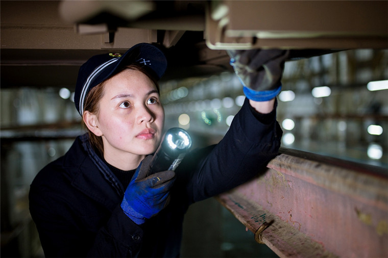“我們這個崗位最重要的是細心,車底螺絲是否移位、電纜接頭是否松動,不敢放過一個細節(jié),比如說動車底盤的天線,遇到北方冰凍雨雪天氣時,易被冰塊砸出裂紋,如沒及時發(fā)現(xiàn),將會對列車信息傳輸造成直接影響。”向念說。