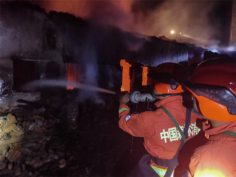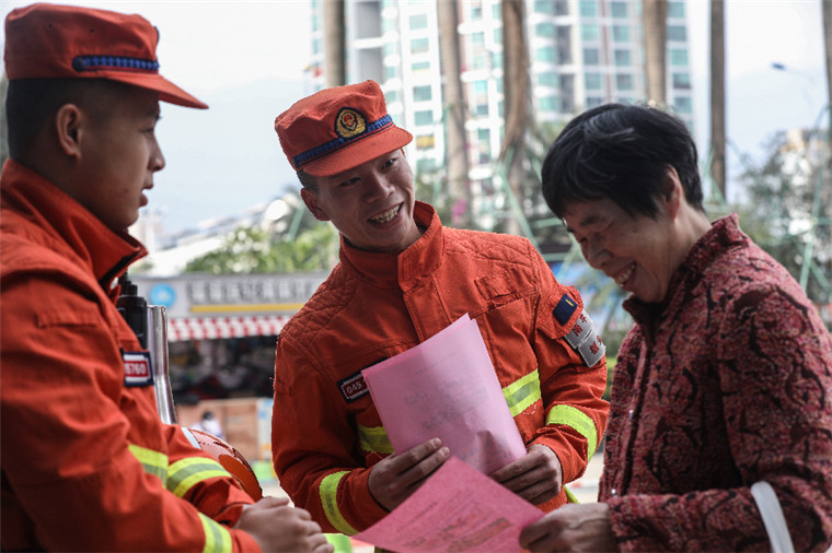 阮成程用“方言”向駐地群眾宣傳防火知識(shí)。