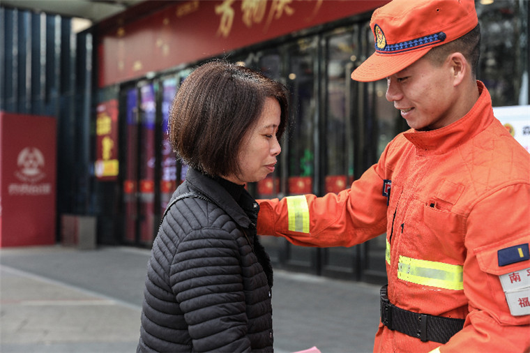 “進(jìn)入景區(qū)請(qǐng)大家上交火源,這里嚴(yán)禁一切野外用火,請(qǐng)大家配合我們工作,謝謝!”第一天一早,阮成程就跟著隊(duì)伍搞起了防火宣傳。架設(shè)展板、擺放傳單、展示裝備……在寧德畬家寨景區(qū)門口,當(dāng)?shù)厝罕姾吐愤^(guò)游客紛紛駐足。“阮成程,來(lái)一下這邊!”原來(lái),一旁的隊(duì)友遇上了一位只會(huì)說(shuō)本地方言的老大娘,他指手畫腳了半天對(duì)方還是不知所云,急忙叫阮成程過(guò)來(lái)“救場(chǎng)”。只見他拿著宣傳單一通講述,也不知說(shuō)得什么,而大娘聽得笑容滿面,頻頻點(diǎn)頭?!瓣P(guān)鍵時(shí)刻還得小阮出馬啊。”班長(zhǎng)李杰龍笑著說(shuō),在場(chǎng)的人一聽都樂了。這一刻,阮成程心中滿是自豪。他意識(shí)到,自己已不僅僅是家鄉(xiāng)的普通一份子,更是一個(gè)守護(hù)駐地生態(tài)安全的衛(wèi)士,將來(lái)自己有信心、有能力為家鄉(xiāng)做出更多的貢獻(xiàn)。