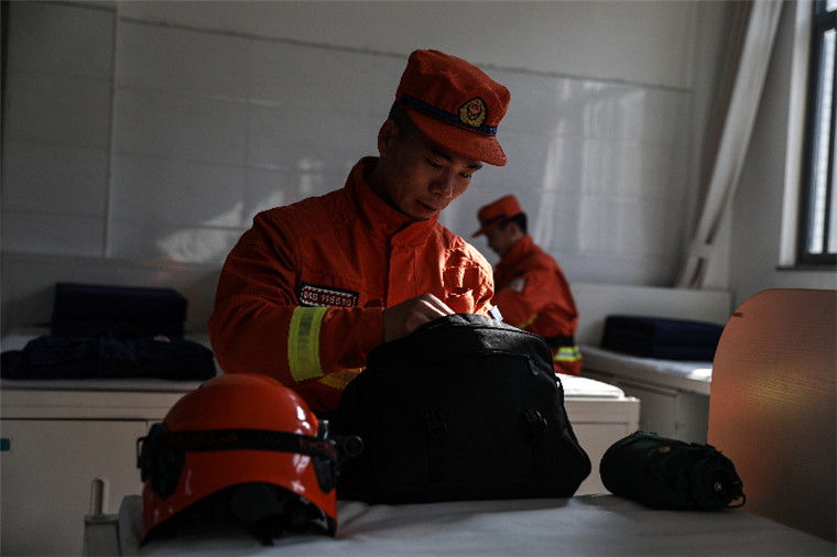 駐防前,阮成程仔細(xì)檢查裝備。