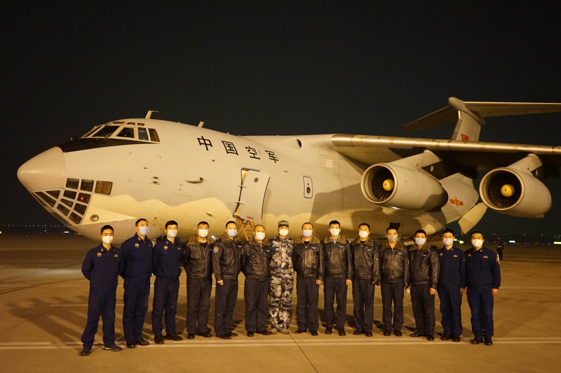 1月24日,空軍航空兵某團(tuán)大型運(yùn)輸機(jī)飛抵陜西咸陽機(jī)場,機(jī)組人員奉命執(zhí)行空運(yùn)空軍軍醫(yī)大學(xué)醫(yī)療隊馳援武漢任務(wù)。新華社發(fā)(李世寧 攝)