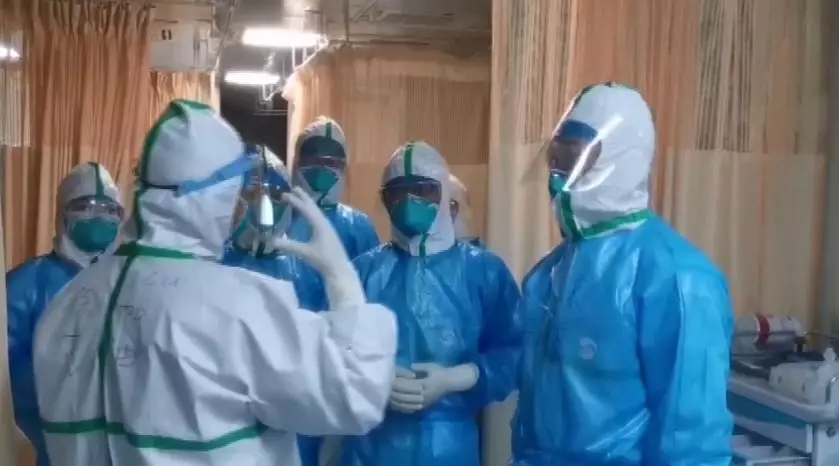 26日上午,空軍軍醫(yī)大學(xué)醫(yī)療隊(duì)首批值班人員一行19人進(jìn)駐武昌醫(yī)院重癥監(jiān)護(hù)病房,對(duì)危重患者進(jìn)行逐一查看,并進(jìn)一步完善救治方案,其余隊(duì)員正在緊密進(jìn)行感控培訓(xùn)。