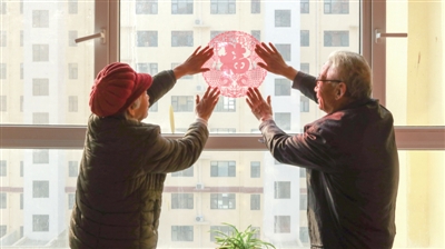高青縣黃河灘區(qū)群眾喜遷新居,貼福字,迎新春。張衛(wèi)堂攝/光明圖片