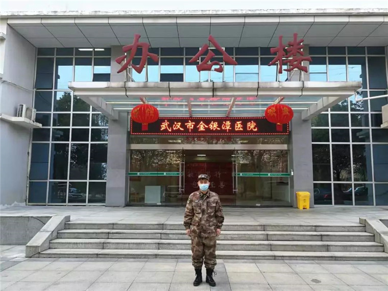 李傳偉在金銀潭醫(yī)院辦公樓前。