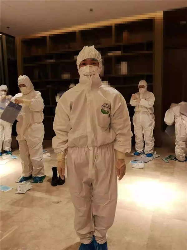 何娟穿戴好防護(hù)服。