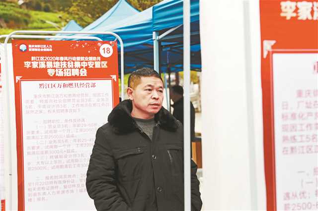 2020年1月17日,在春風(fēng)行動(dòng)就業(yè)援助月李家溪易地扶貧搬遷安置點(diǎn)專場(chǎng)招聘會(huì)上,楊森在查找招聘信息。
