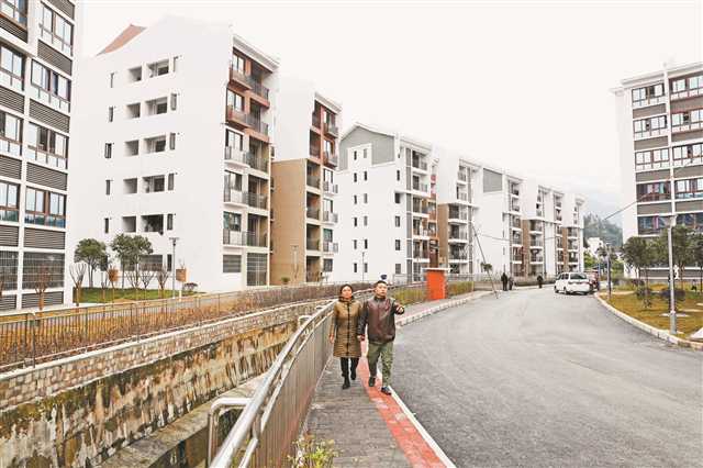 在李家溪易地扶貧搬遷安置點(diǎn),楊森和妻子一起逛小區(qū),感受新居周邊的優(yōu)美環(huán)境。