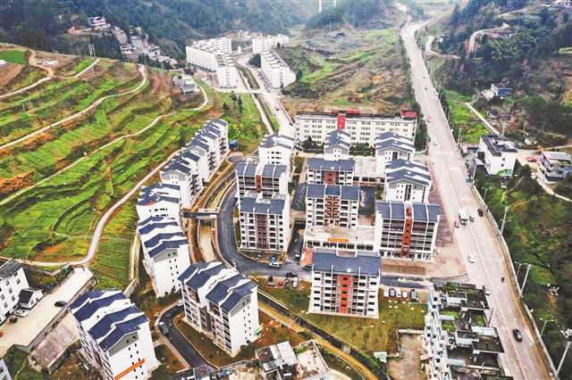 無(wú)人機(jī)拍攝的黔江區(qū)李家溪易地扶貧搬遷安置點(diǎn)。