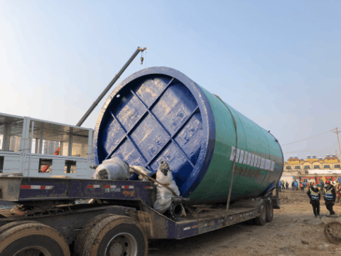 1月29日19點30分,項目最大雨污水處理一體化泵站完成吊裝,標(biāo)志該應(yīng)急醫(yī)院排水“主動脈”就位。