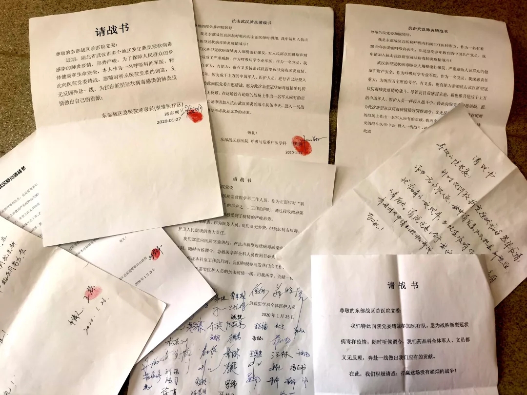 1月25日,大年初一,正是萬(wàn)家團(tuán)圓的時(shí)候,東部戰(zhàn)區(qū)總醫(yī)院廣大醫(yī)務(wù)人員一聲令下,聞令而動(dòng),迅速返回醫(yī)院,院本部、各醫(yī)療區(qū)多位醫(yī)護(hù)人員遞交“請(qǐng)戰(zhàn)書”,表達(dá)“請(qǐng)戰(zhàn)”意愿,希望能夠站在抗擊疫情的最前線,讓更多患者得到有效的救治。