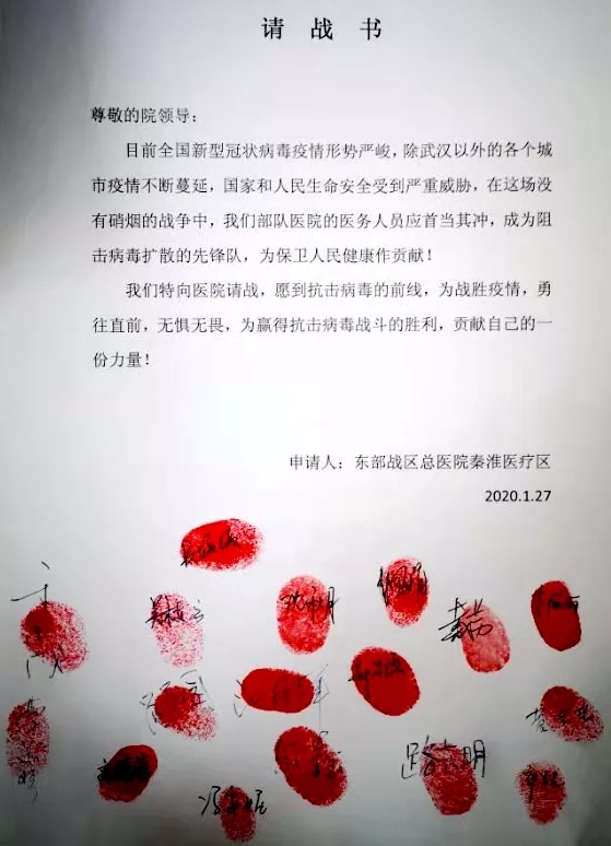 秦淮醫(yī)療區(qū)請(qǐng)戰(zhàn)書
