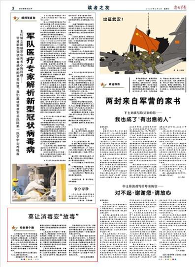 84消毒液在使用時切記要注意以下幾點,確保安全和有效。請關(guān)注今日出版的《解放軍報》的詳細報道——