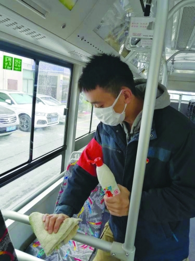 南京公交車(chē)堅(jiān)持每趟一清掃,每日一消毒,每趟一通風(fēng)。