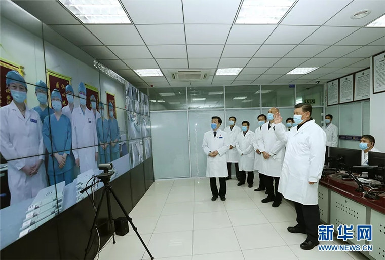 2月10下午,北京地壇醫(yī)院遠程診療中心,一塊大屏幕將千里之隔的北京、武漢兩地聯(lián)系起來。習(xí)近平總書記視頻連線湖北武漢抗擊新冠肺炎疫情前線,給全國奮戰(zhàn)在疫情防控一線的醫(yī)務(wù)工作者和廣大干部職工送去黨中央的關(guān)懷和慰問,并對疫情防控提出了新要求。