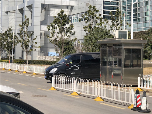 接送劉智明遺體的殯儀館車輛抵達。 澎湃新聞記者 湯琪 圖
