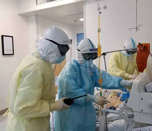 晚上10點(diǎn)左右,一個病人病情惡化,必須盡快給予有創(chuàng)呼吸支持治療。接到通知,我立即從宿舍趕到醫(yī)院,換上防護(hù)服,迅速進(jìn)入病房,完成呼吸機(jī)、患者準(zhǔn)備,隨后在插管小組的配合下,完成了本病區(qū)的第一例氣管插管、有創(chuàng)機(jī)械通氣。當(dāng)搶救結(jié)束,看到患者情況慢慢改善,心里特別高興,這就是醫(yī)生的職業(yè)魅力所在吧。