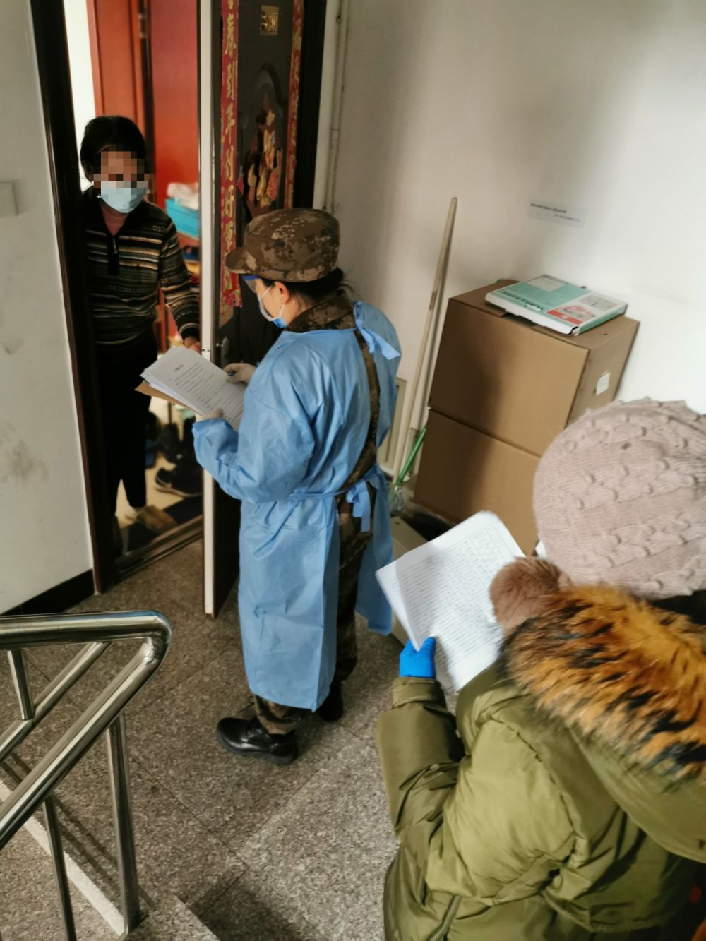 第三醫(yī)學(xué)中心、京西醫(yī)療區(qū)等單位工作人員入戶普查。張靜 攝