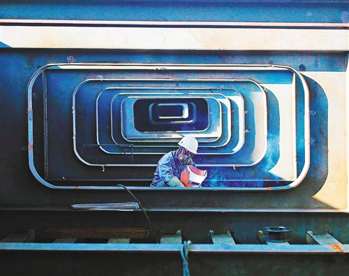 2月20日,工人在位于江西省贛州市章江南大道的南河大橋拓寬改造項目現(xiàn)場施工。 陳地長攝(中經(jīng)視覺)