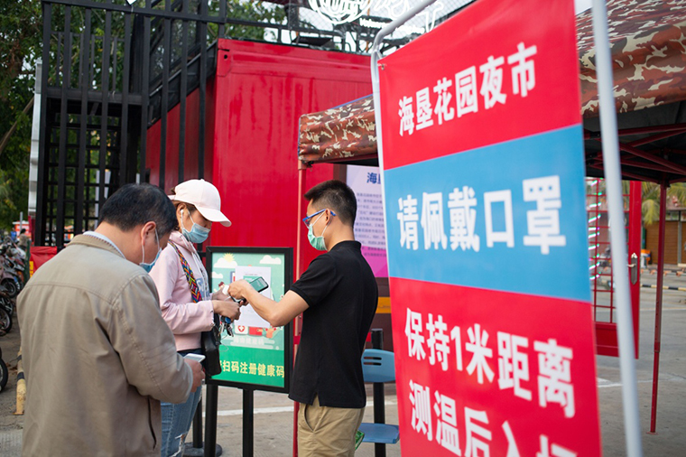 近日,海南省??谑泻ɑ▓@夜市恢復(fù)營(yíng)業(yè),成為??谑惺准覐?fù)工的夜市。該市場(chǎng)嚴(yán)格落實(shí)各項(xiàng)防控措施,市民需憑海南健康碼進(jìn)入夜市,餐飲店分區(qū)域分批次陸續(xù)恢復(fù)營(yíng)業(yè),同時(shí)市場(chǎng)鼓勵(lì)市民采取打包的方式購(gòu)餐。