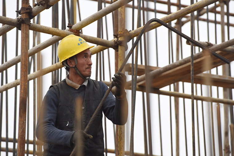 3月2日,施工人員在肥東縣袁河西水庫除險加固工程項目施工。