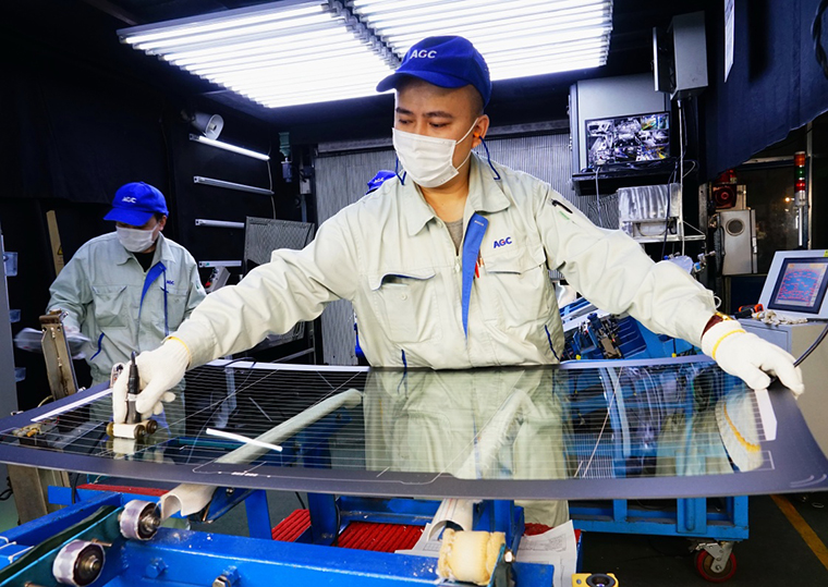 3月2日,工人在秦皇島經(jīng)濟(jì)技術(shù)開發(fā)區(qū)一家汽車玻璃生產(chǎn)企業(yè)的生產(chǎn)車間工作。
