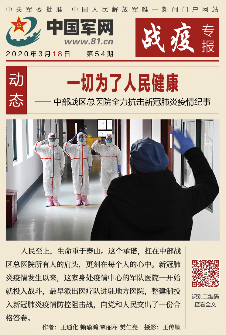 中國軍網(wǎng)戰(zhàn)疫專報|中部戰(zhàn)區(qū)總醫(yī)院:一切為了人民健康