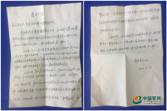 “疫情連三月,家書抵萬金?!倍棠痰呐畠簜儷@悉母親在火神山醫(yī)院的現(xiàn)狀后倍感欣慰,紛紛通過微信發(fā)來祝福,她們?cè)趯懡o吳醫(yī)生的信中這樣說:“我們真誠地道一聲,謝謝了!”