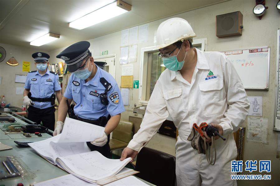 3月24日,??谶厵z總站馬村邊檢站民警對(duì)在港船舶進(jìn)行巡查。 近日,海南省多個(gè)重點(diǎn)項(xiàng)目相繼復(fù)工復(fù)產(chǎn),??谶厵z總站馬村邊檢站采用24小時(shí)三級(jí)值班服務(wù)制度,利用電子監(jiān)控、無(wú)人機(jī)巡查、人工巡查等方式靠前服務(wù),對(duì)入境馬村口岸人員提前進(jìn)行大數(shù)據(jù)排查,并督促在港船舶做好消毒、通風(fēng)等防疫措施,做到疫情防控和邊檢服務(wù)兩不誤。 新華社發(fā)(張麗蕓攝)