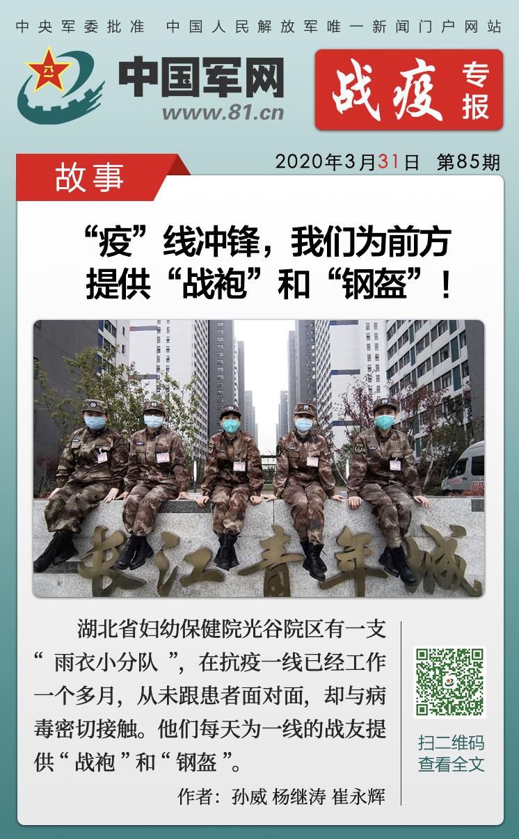 中國軍網(wǎng)戰(zhàn)疫專報(bào)|“疫”線沖鋒,我們?yōu)榍胺教峁皯?zhàn)袍”和“鋼盔”!