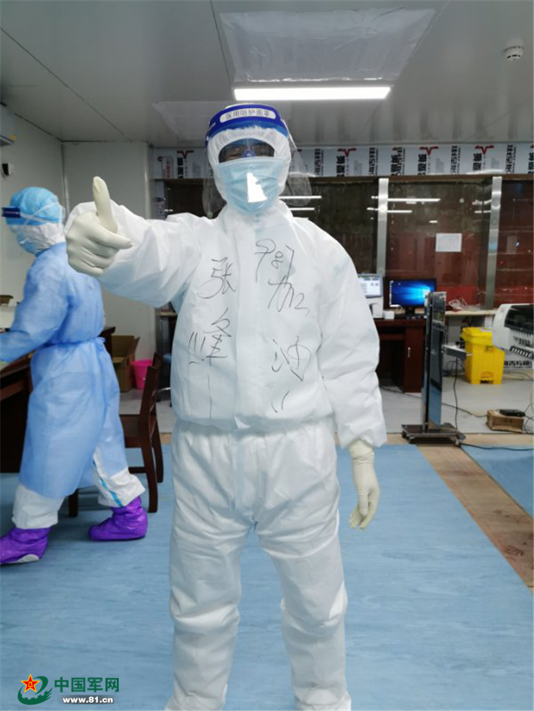 朱佩奇和張峰是一對“黃金搭檔”,他們的戰(zhàn)位在檢驗科,這里是微觀世界里的戰(zhàn)“疫”場所。雖然他們之中,一個是參加過多次演習(xí)和維和任務(wù)的老隊員,一個是首次參加大項任務(wù)的新同志,但他們在抗疫工作中都是最優(yōu)秀的“偵察兵”。每天面對幾百份標(biāo)本,從標(biāo)本接收、前處理、檢測、審核報告,到最終處理標(biāo)本,他們練就了一雙“火眼金睛”。從醫(yī)院成立之初到現(xiàn)在40余天里,他們處理標(biāo)本5000余件,為臨床提供準(zhǔn)確的檢驗檢疫報告,圓滿完成“偵察任務(wù)”。
