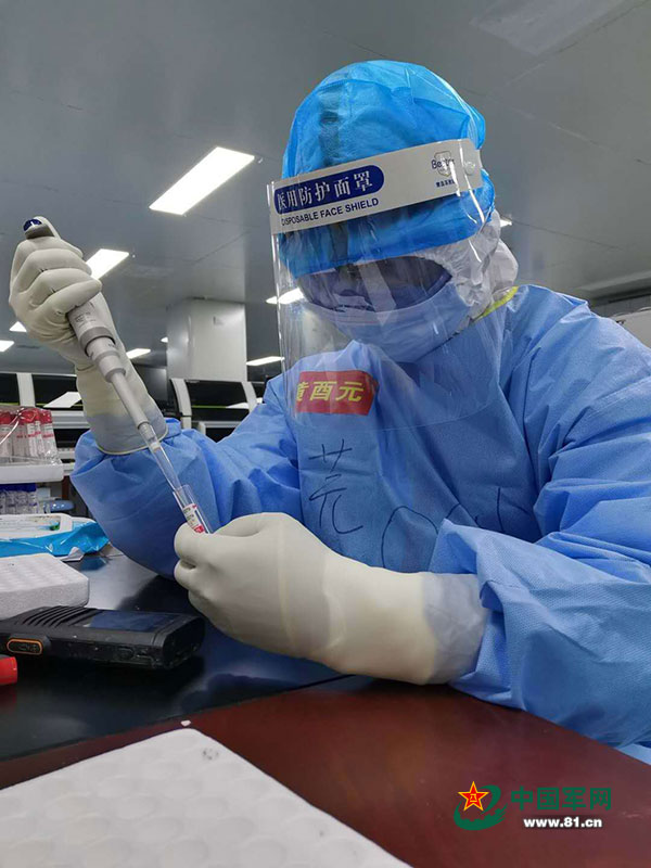黃酉元?jiǎng)偟结t(yī)院就被任命為臨檢組組長(zhǎng),他帶領(lǐng)組員克服了防護(hù)用具護(hù)目鏡起霧“看不著”,隔著防護(hù)服及兩層手術(shù)帽子,耳朵嗡嗡作響“聽(tīng)不清”,手上帶了三層橡膠手套后,觸感降低“摸不清”等問(wèn)題??焖僬沓霾僮髁鞒?,迅速熟悉儀器,配合科主任安排具體工作,僅僅用了一天時(shí)間就讓本組順利開(kāi)工。
