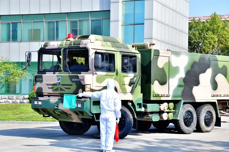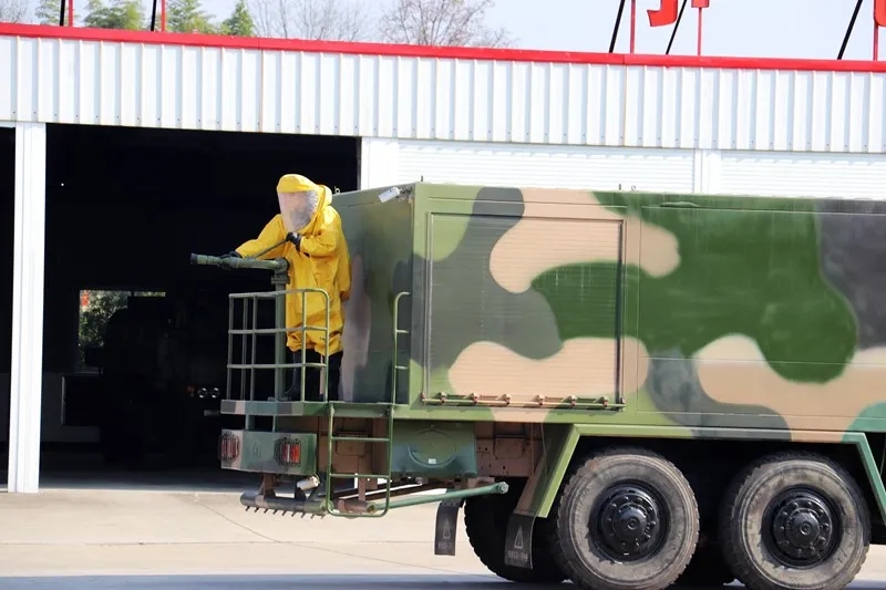 去污劑噴灑車對事故區(qū)域進行地毯式布撒和污染壓制