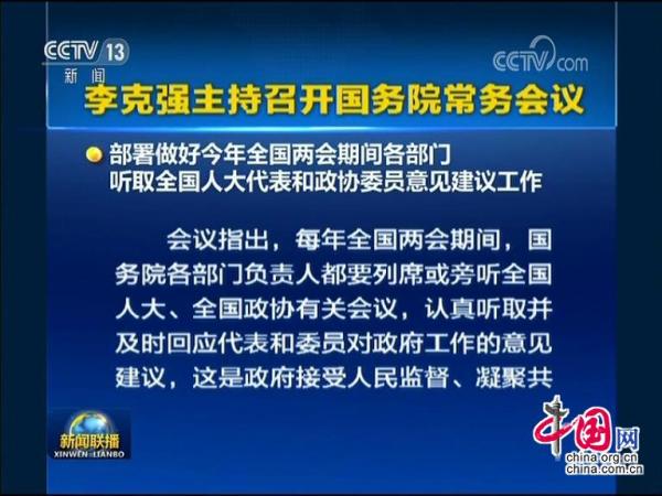 5月13日,李克強(qiáng)總理主持召開國務(wù)院常務(wù)會(huì)議,部署做好今年全國兩會(huì)期間各部門聽取全國人大代表和政協(xié)委員意見建議工作。
