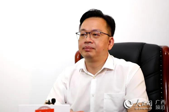 全國(guó)人大代表、環(huán)江縣縣長(zhǎng)黃炳峰接受采訪。韋穎琛攝