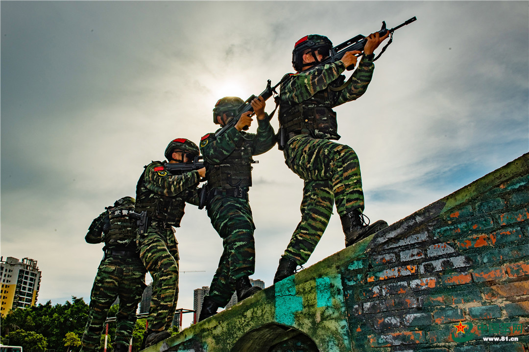 特戰(zhàn)隊員運用戰(zhàn)術隊形搜索前進。余海洋攝