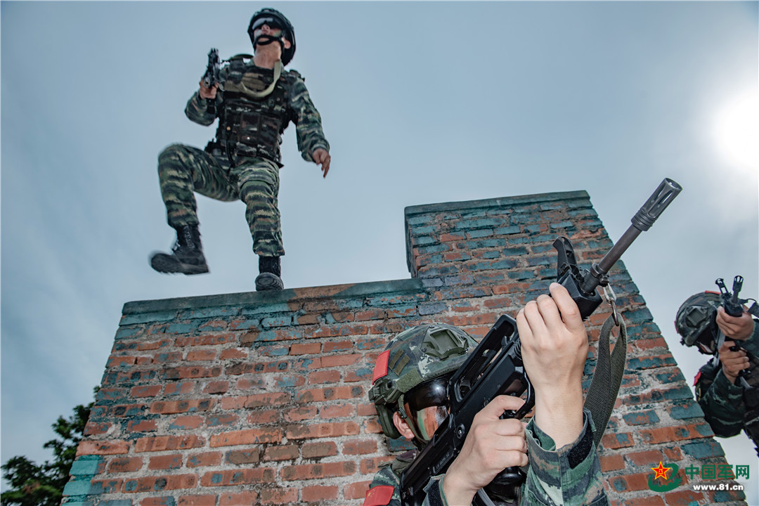 特戰(zhàn)隊(duì)員掩護(hù)隊(duì)友通過障礙物。余海洋攝