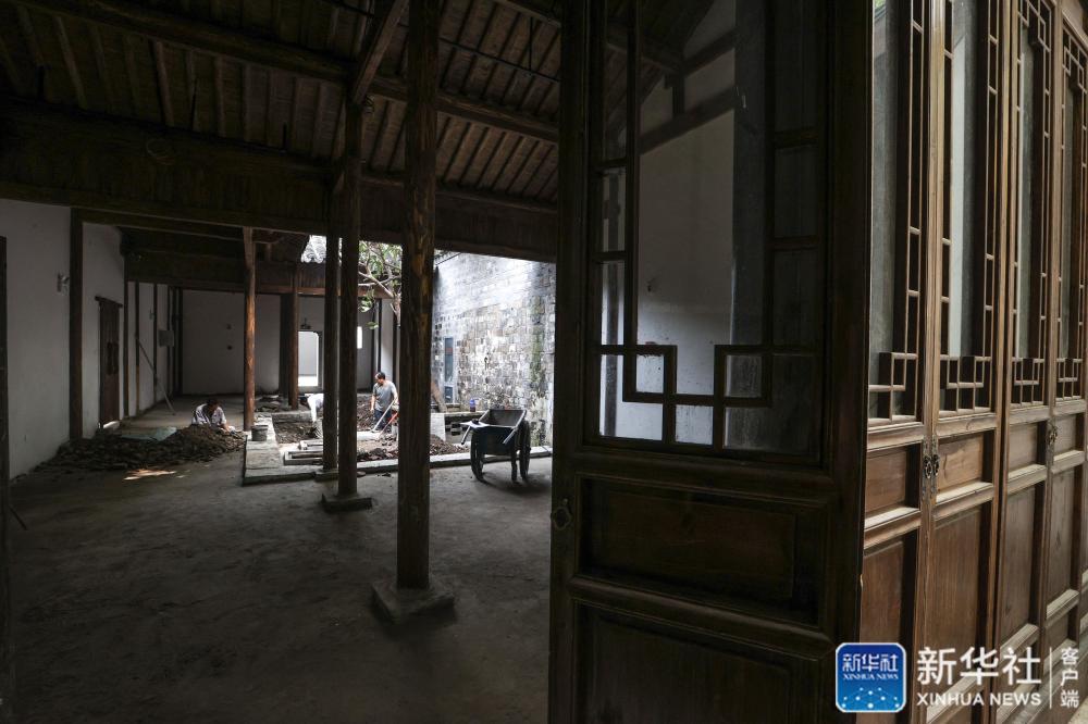 在南京小西湖片區(qū),幾名建筑工人在老宅里施工(7月1日攝)。新華社記者 楊磊 攝