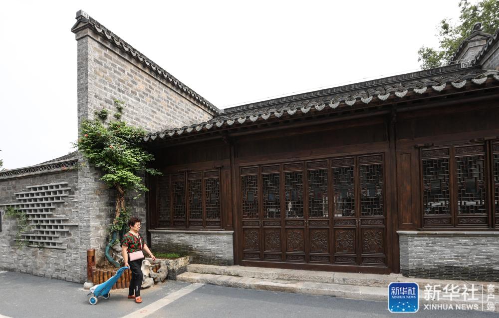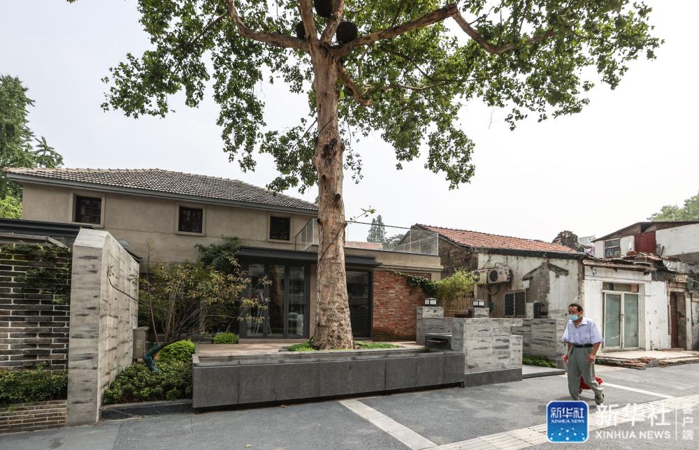 在南京小西湖片區(qū),一名居民走過一棟改造成咖啡屋的居民老宅(7月1日攝)。新華社記者 楊磊 攝