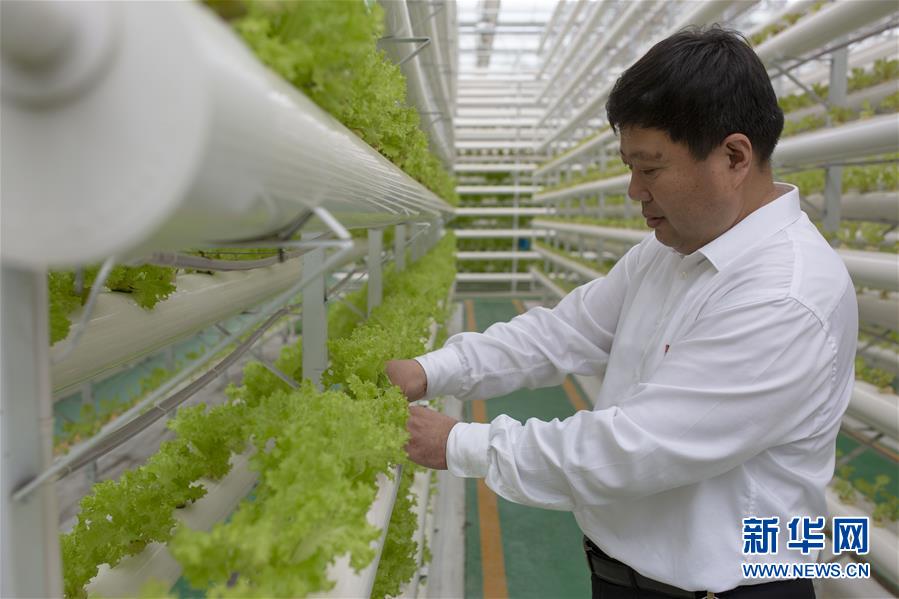 山東省蘭陵縣代村黨委書(shū)記王傳喜在查看無(wú)土栽培蔬菜長(zhǎng)勢(shì)(6月18日攝)。新華社記者 王陽(yáng) 攝