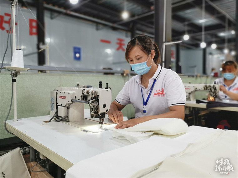 △正在縫制中的書包(總臺央視記者邢彬拍攝)