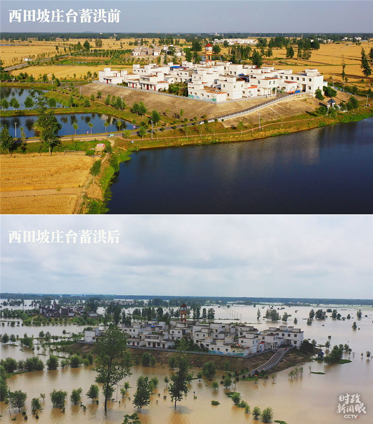 △這是蓄洪前后的莊臺(tái)對(duì)比圖。莊臺(tái)形似倒扣的盆,中間高、四周低,人居住在臺(tái)子上,洪水從四周流過(guò)。(資料圖)