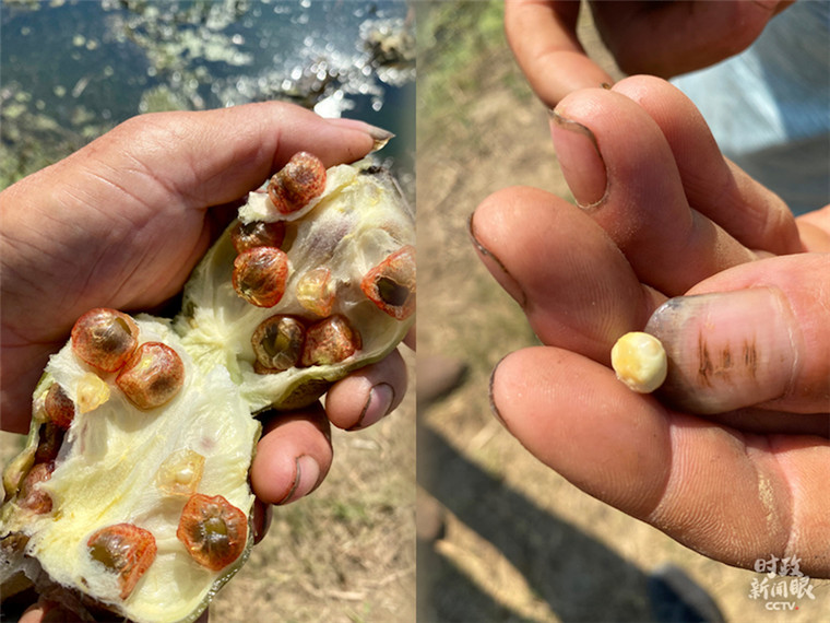 △當(dāng)?shù)胤N植的芡實(shí),可藥食兩用。(總臺(tái)央視記者李輝拍攝)