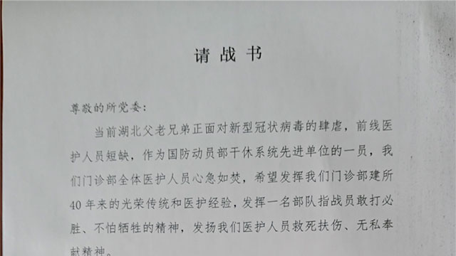“若有戰(zhàn),招必回,戰(zhàn)必勝……” 1月26日一早,一張落款為遼寧省軍區(qū)沈陽第十二干休所門診部全體醫(yī)護(hù)人員的“請戰(zhàn)書”出現(xiàn)在干休所政委李鐵的辦公桌上。
