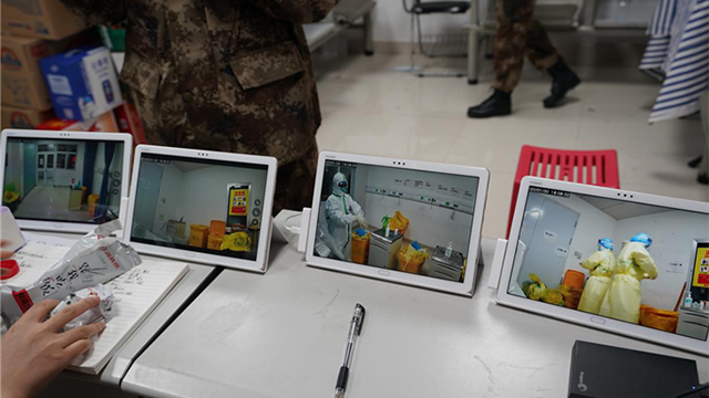 走進(jìn)武漢金銀潭醫(yī)院綜合病房樓的陸軍軍醫(yī)大學(xué)醫(yī)療隊(duì)辦公室,四個(gè)平板電腦前坐著兩位醫(yī)療隊(duì)員,哪怕是正在吃飯,她們的眼睛也時(shí)刻沒有離開屏幕。