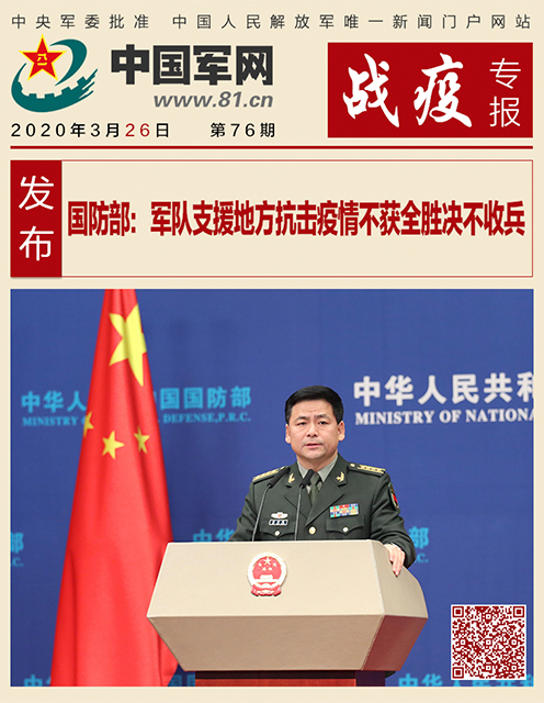 國防部:軍隊支援地方抗擊疫情不獲全勝決不收兵2020-03-26 17:28