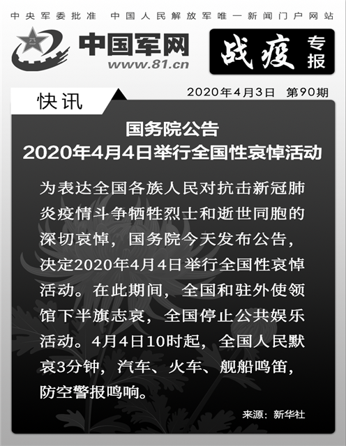 4月4日全國哀悼抗疫犧牲烈士和逝世同胞2020-04-03 15:26