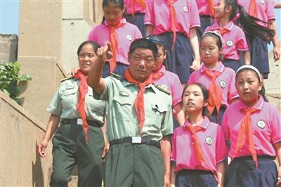 2017年9月14日,王繼才夫婦向上島參觀的孩子們進行國防教育。 吳晨光 徐兆祝攝 視覺江蘇網(wǎng)供圖