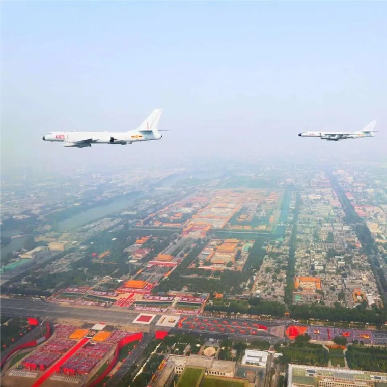 慶祝新中國成立70周年閱兵式上,轟炸機梯隊飛臨天安門廣場上空接受檢閱。