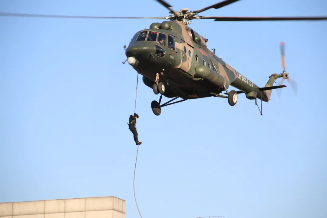 副旅長劉翠林:我們現(xiàn)在旅里提的口號就是,訓(xùn)練難度不能低于任務(wù)難度,所有一切行動都圍繞著作戰(zhàn)的整體行動來設(shè)計。8米的順風(fēng),樓頂索降,我都飛了幾次,一開始真停不住,順風(fēng)吹得飛機嘩嘩走......那不行,特戰(zhàn)隊員在樓頂,是立體攻擊,要從地面、樓頂?shù)葞讉€方向突進(jìn),達(dá)不成作戰(zhàn)效果肯定不行。